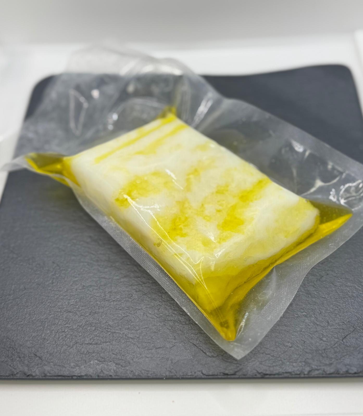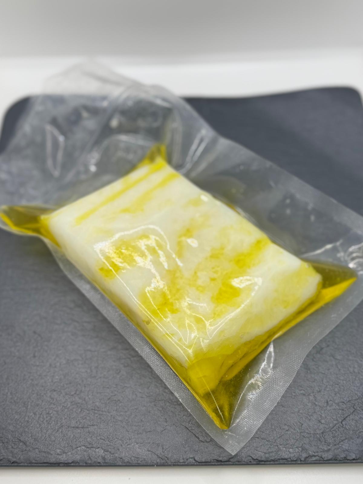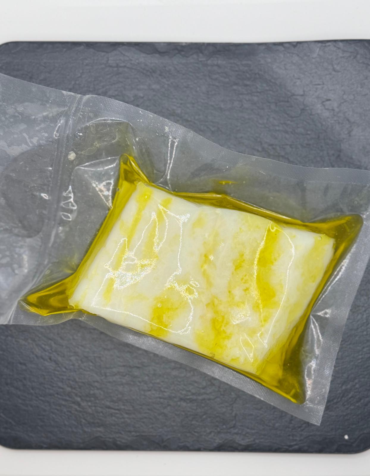 Bacalao en aceite de oliva virgen extra, peso 200-250gramos unidad, envasado al vacio.